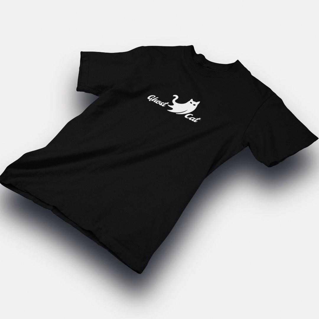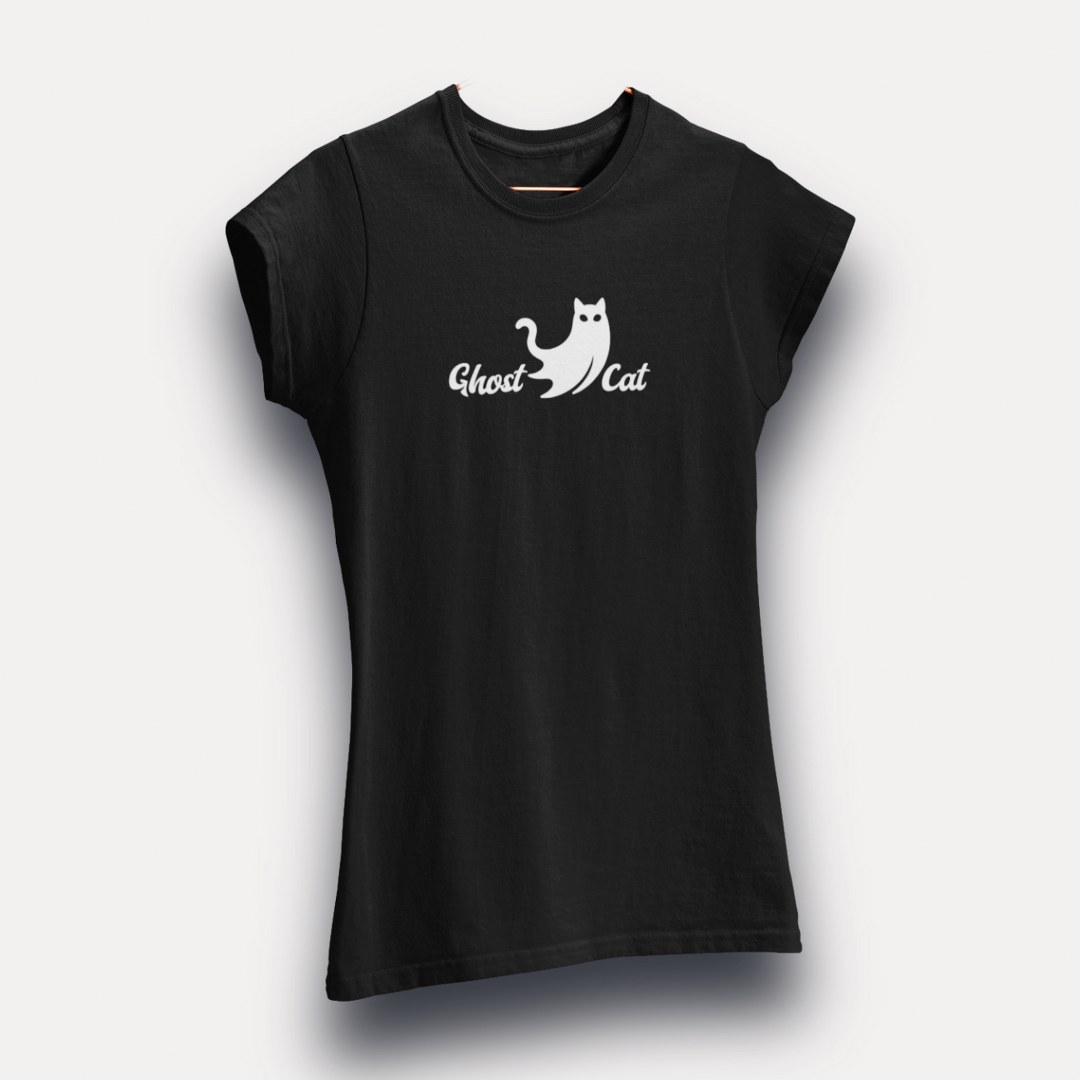 Unisex T-Shirt für Damen – Ghost Cat – Lustiges Katzenmotiv – Schwarzes Shirt aus Baumwolle