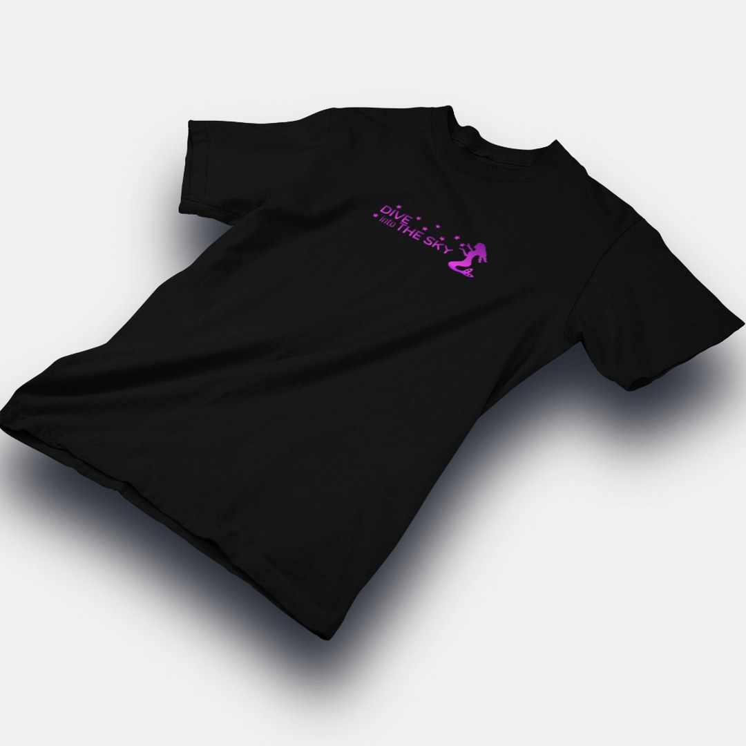 Unisex T-Shirt für Damen – Dive into the sky – Traumhaftes Design – Schwarzes Shirt aus Baumwolle