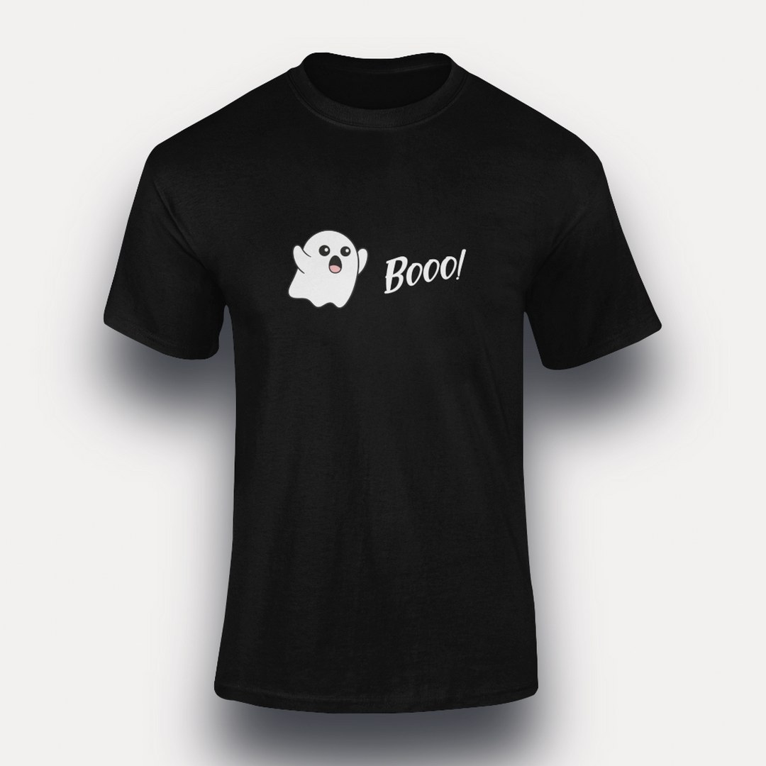 T-Shirt mit Geist – Schwarzes Herren T-Shirt mit Aufdruck „Booo!“ -OEKO-TEX zertifiziert