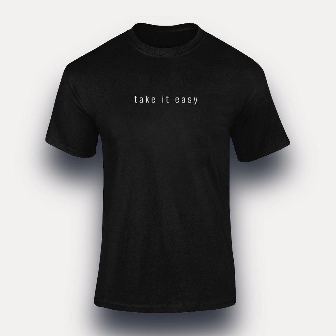 Schwarzes Herren T-Shirt – take it easy – Minimalistisches Design – Angenehmer Tragekomfort – OEKO-TEX zertifiziert