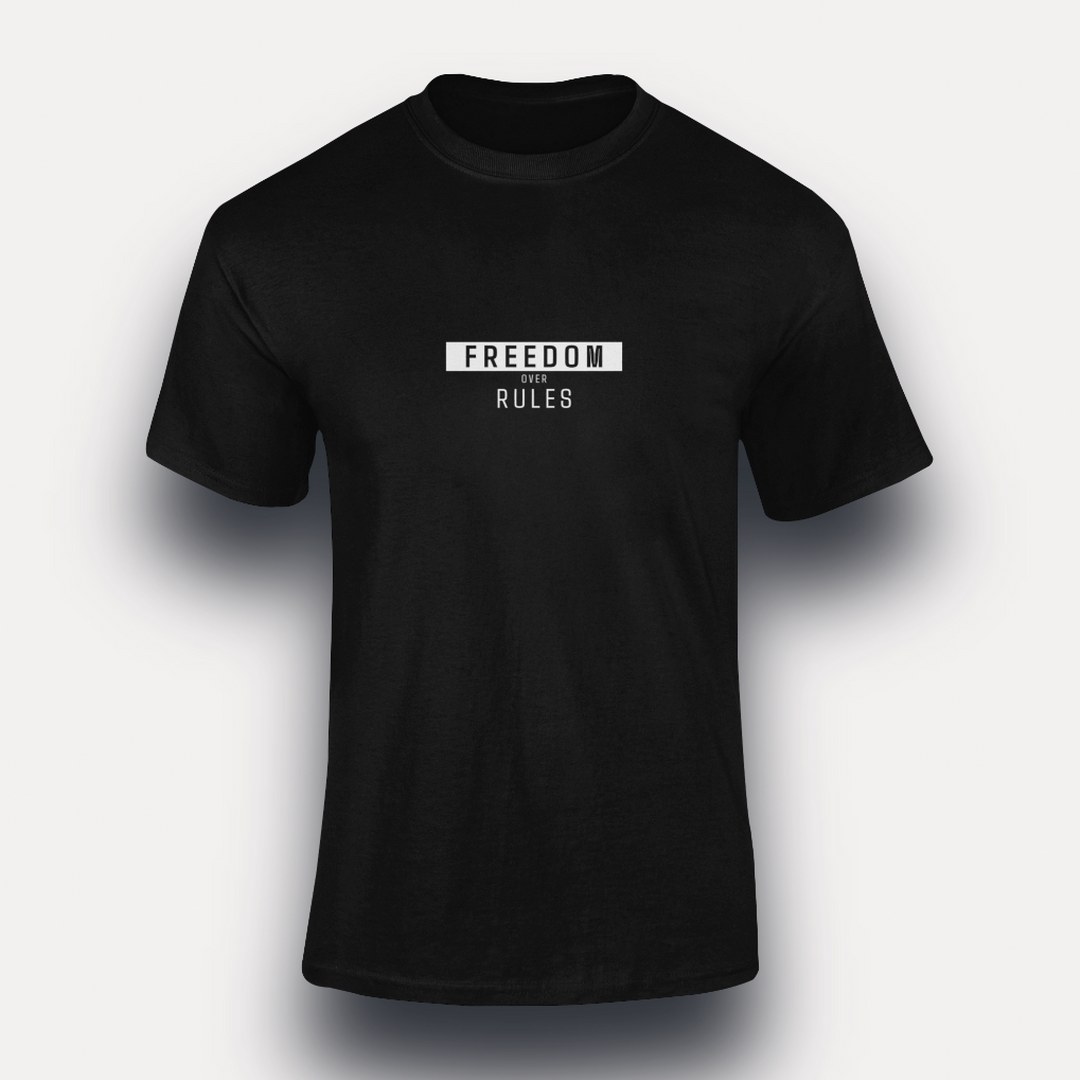 Schwarzes Herren T-Shirt – FREEDOM OVER RULES – Statement Shirt – Bequem & OEKO-TEX zertifiziert