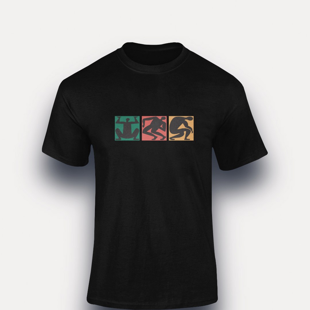 Schwarzes Herren T-Shirt – Farbige Figuren – Künstlerisches Design – Komfortabel & OEKO-TEX zertifiziert