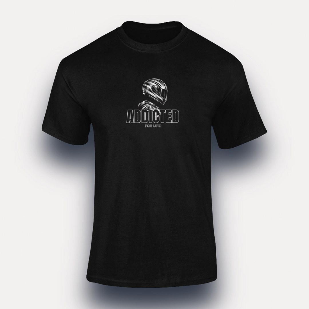 Schwarzes Herren T-Shirt – ADDICTED FOR LIFE – Biker Shirt – Motorsport Design – OEKO-TEX zertifiziert