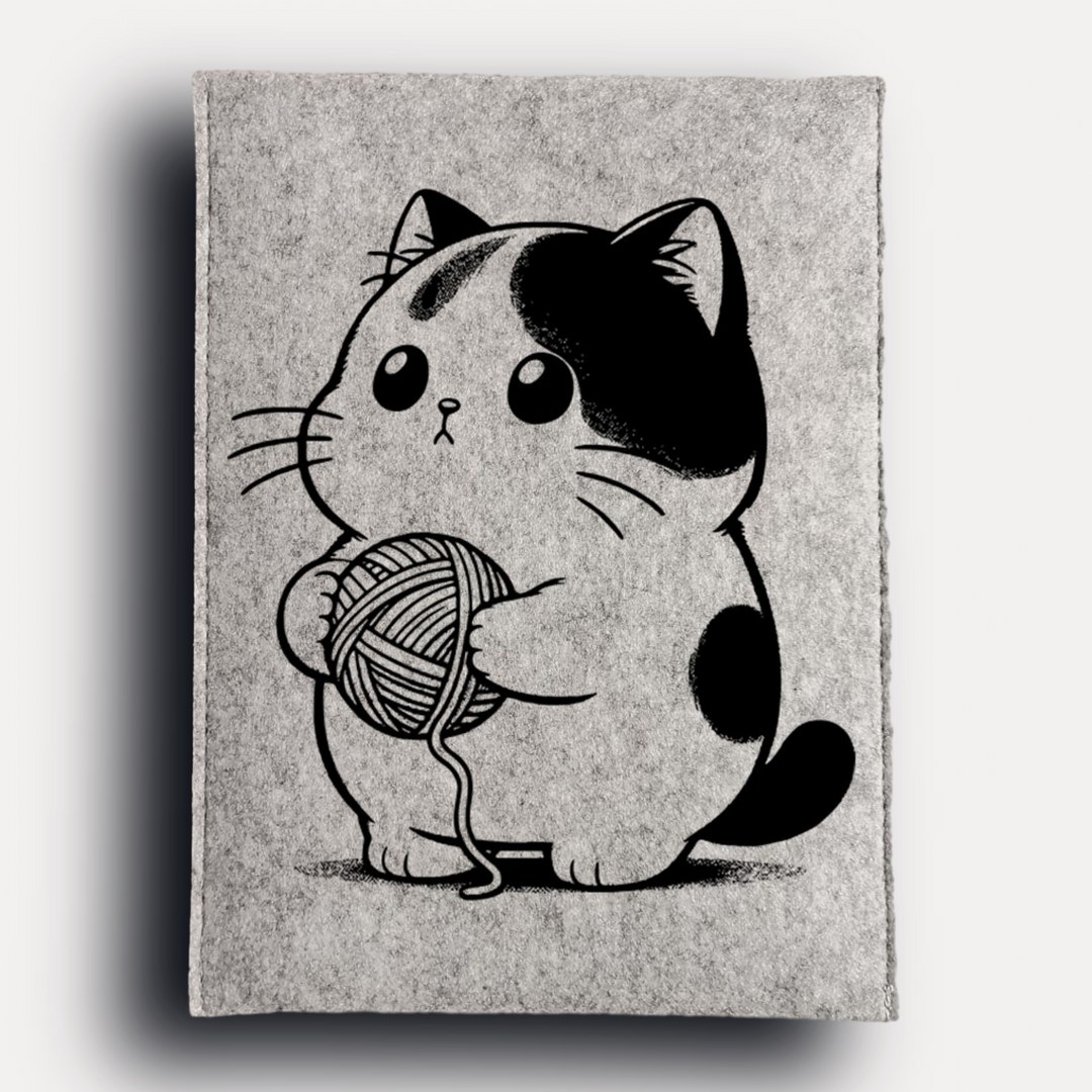 Filz Etui mit Katze – personalisiert mit Namen – Tablet Hülle aus Recycling Filz – Geschenk für Katzenfans