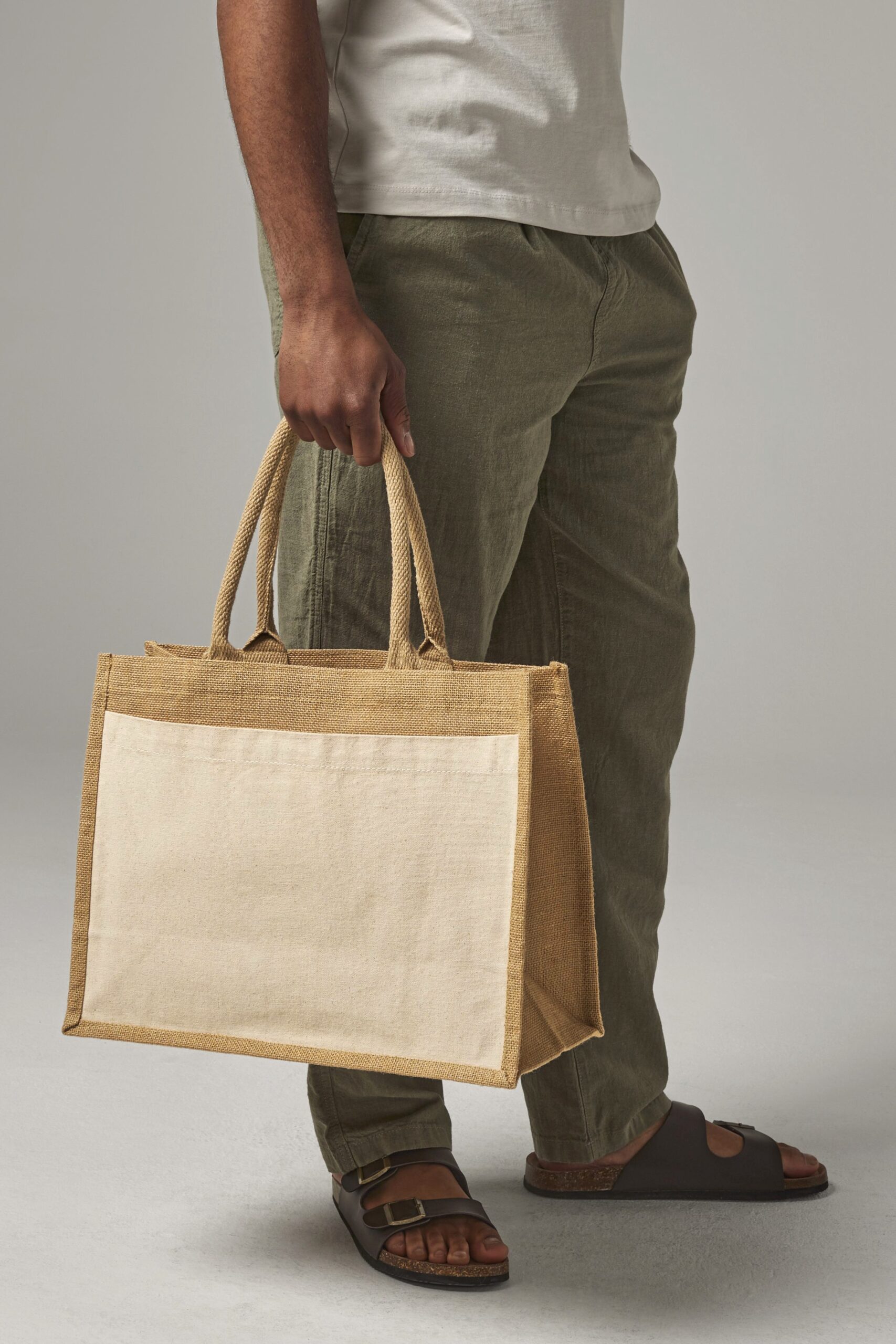 | Material | Tasche: 100% Jute, aufgesetzte Tasche: 100% Baumwolle |