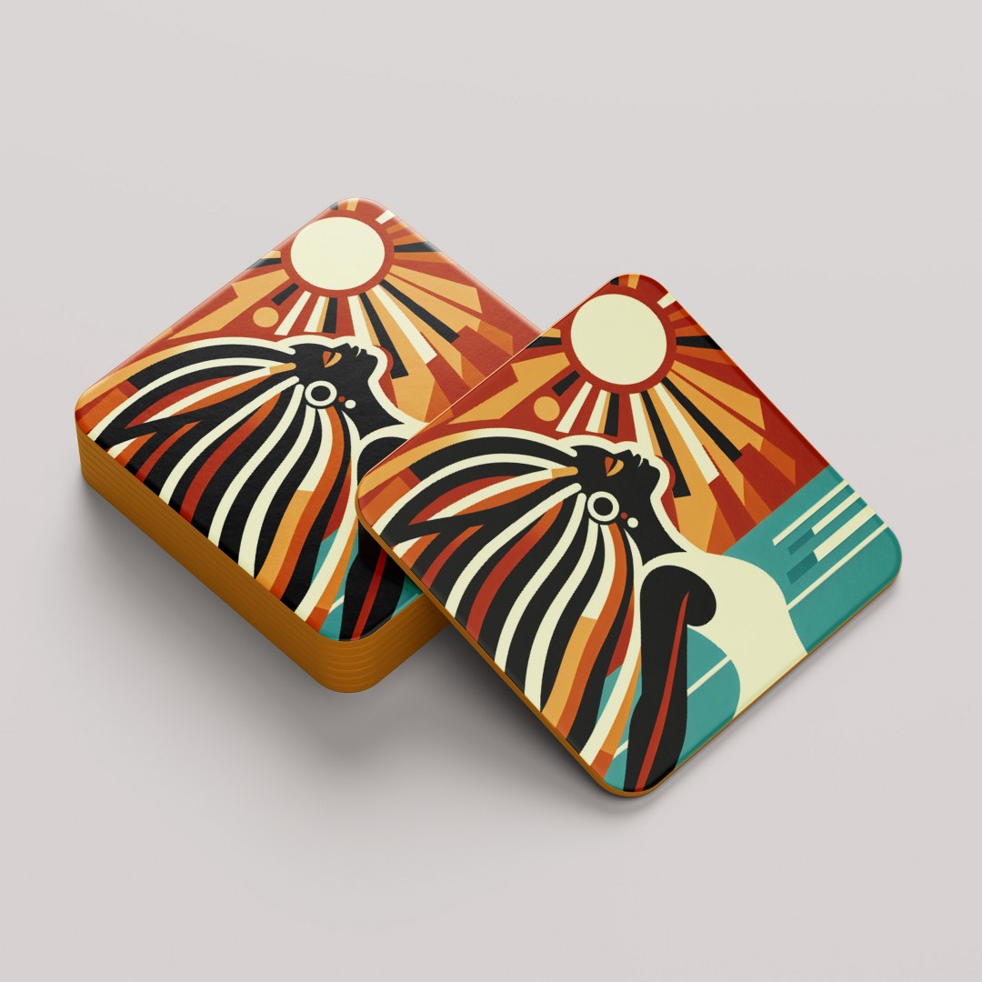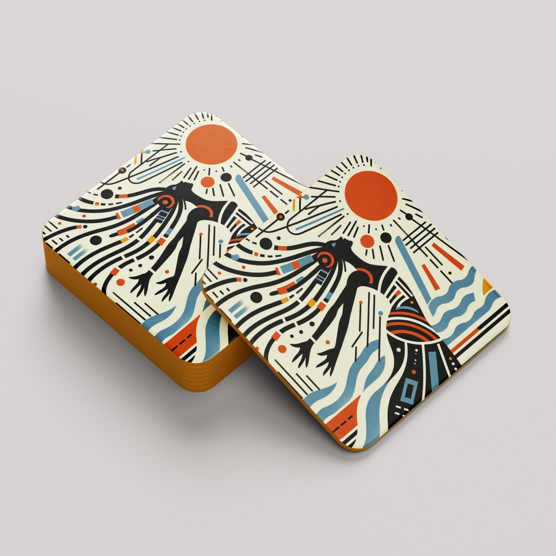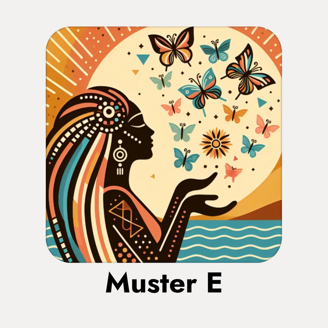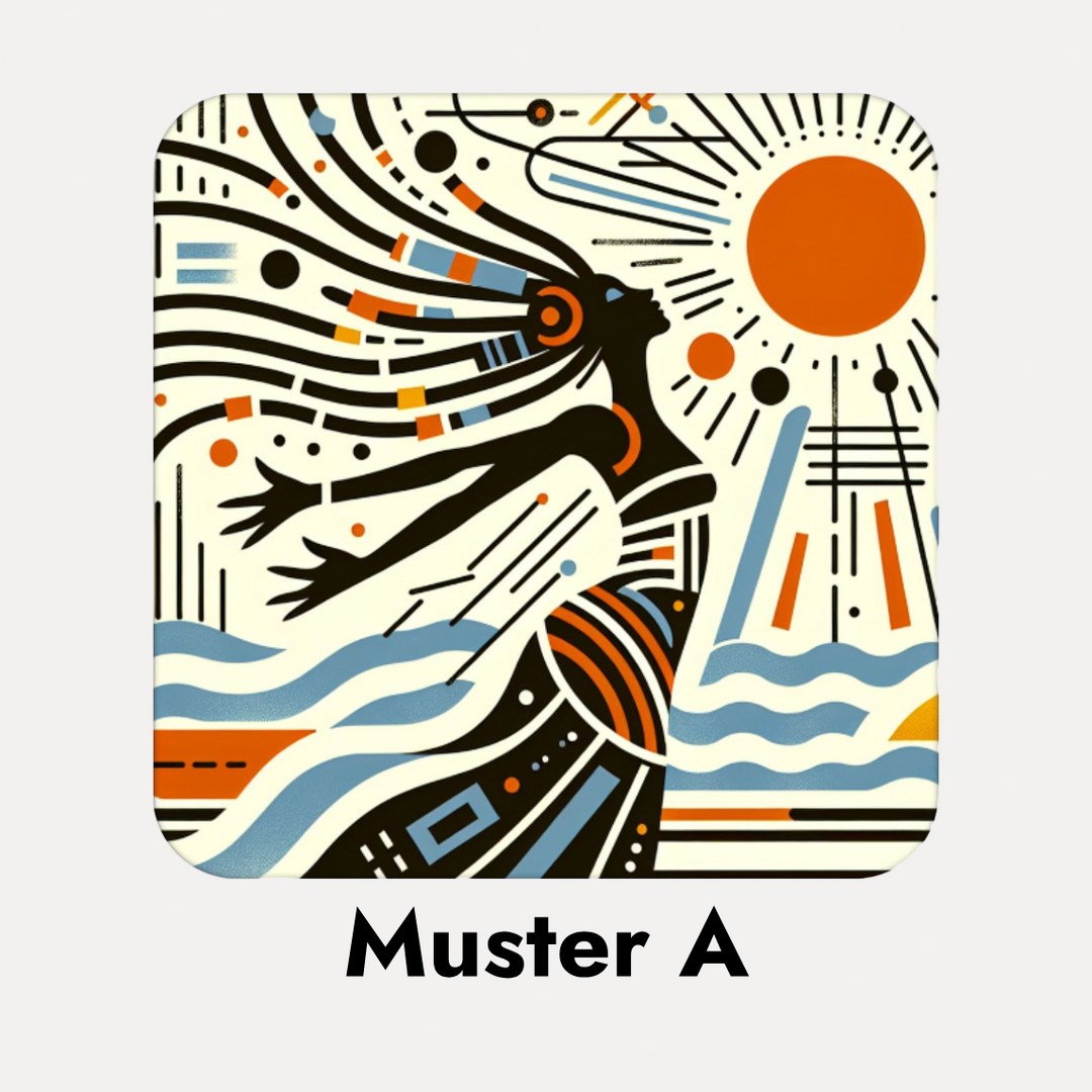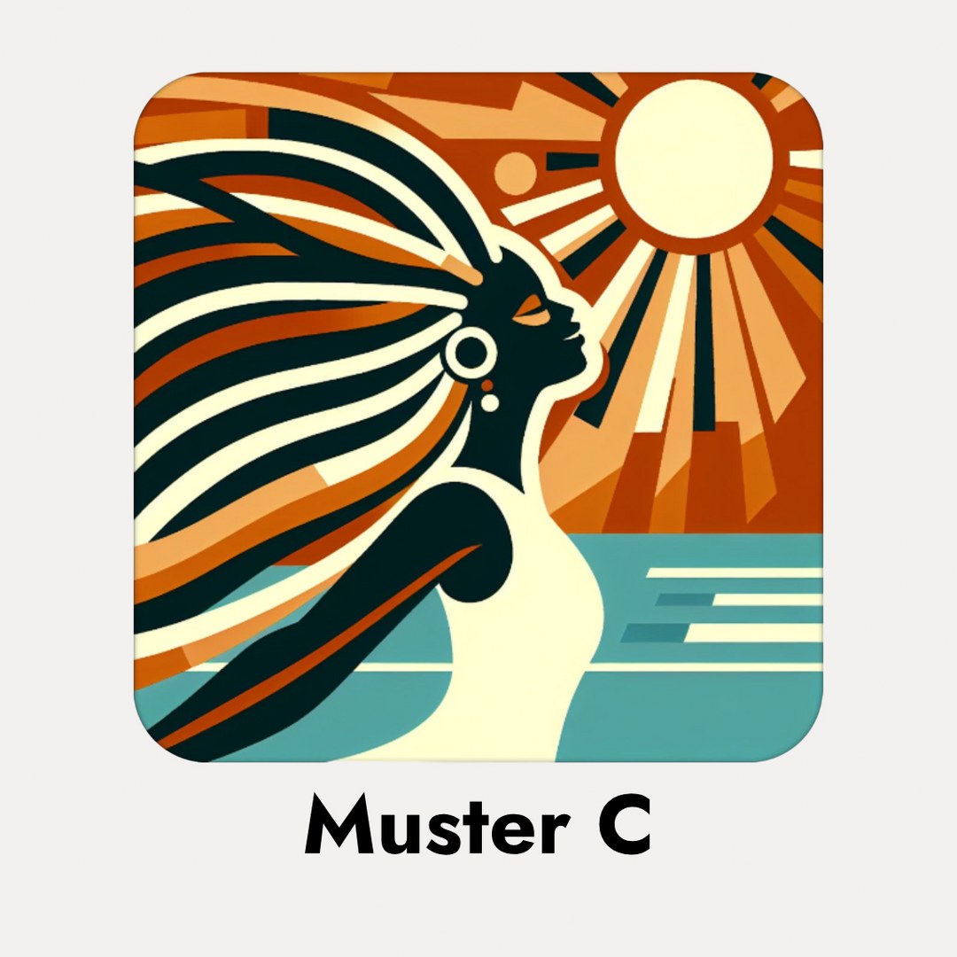 Diese quadratischen Korkuntersetzer mit ausdrucksstarken Frauensilhouetten und Sonnenmotiven vereinen Ästhetik, Kraft und Lebensfreude.